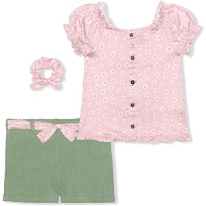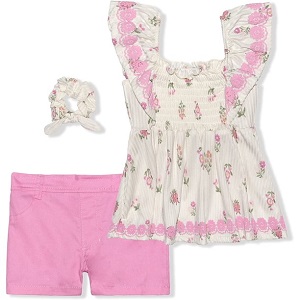 Nannette Girl’s 2 Pack Ruffled Shirt or Smock Blouse and Shorts Set with Hair Scrunchie