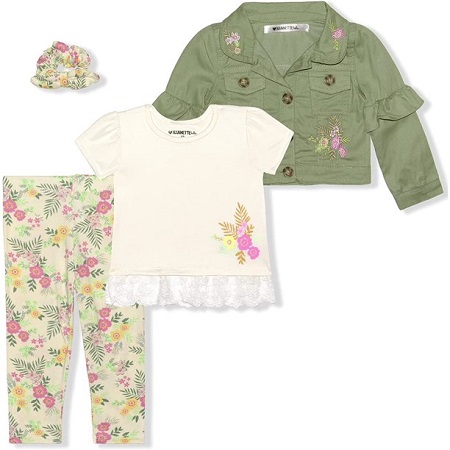 Nannette Girl’s 4-Pack Shirt, Jacket and Leggings Set with Hair Scrunchie for Kids